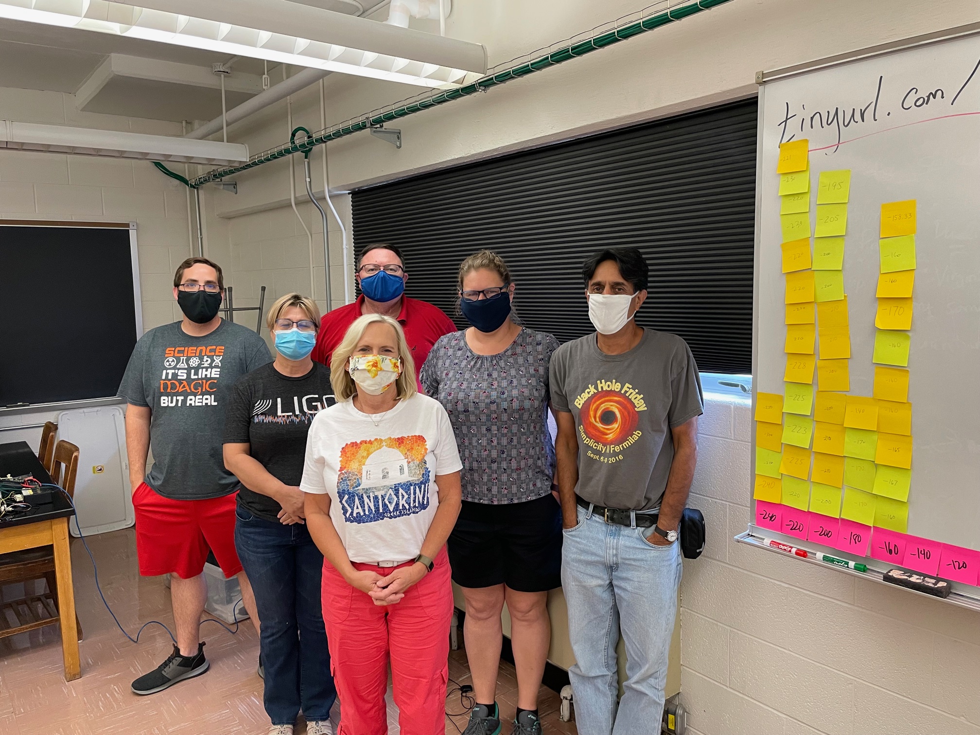 A three-day workshop was held at KSU on August 2-4, 2021. This was attended by 5 teachers. The workshop was devoted to CMS activities and cosmic ray muon detectors and all teachers brought their detectors and took data and measured the speed of muons. The teachers plan to keep their cosmic ray detectors running in their schools. Martin Shaffer ran the CRMD activities and Shane Wood rand the CMS activities. Bret Flanders of KSU Physics presented on the physics of recorded sound and Talat Rahman of UCF discussed UCF high-school outreach.