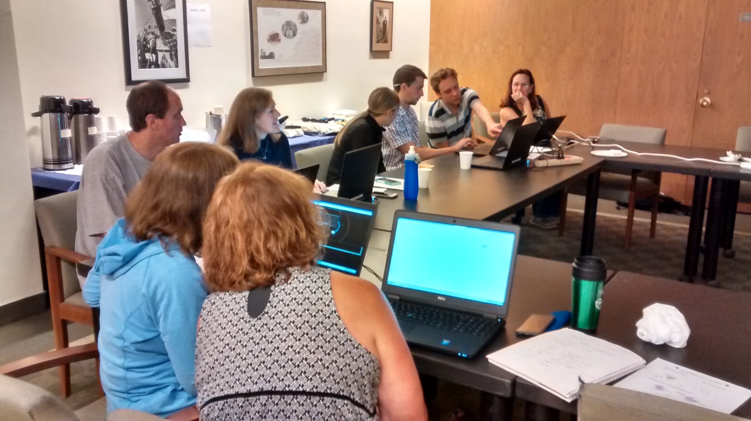 Spotlight on the Syracuse University QuarkNet Center: Activity in 2016 at this center began in the spring with two days of LHCb masterclasses, with a total of 55 students from four area high schools participating in the daylong event in which students learn about the LHC and analyze data from LHCb. During the summer, eight teachers (seven of whom were new to QuarkNet) took part in a two-day CMS data workshop on July 6–7. Teachers had the special treat of three mentors (Profs. Steven Blusk, Matthew Rudolph, and Mitch Soderberg) working with them during these two days, allowing for abundant mentor-teacher interaction throughout.